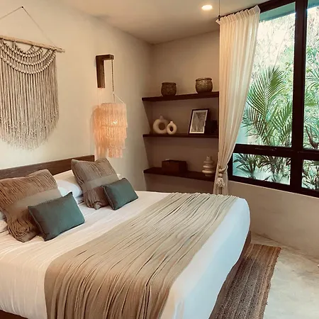 3 yatak odalı ve havuz manzaralı Boho Jungle Villa -Pvt Pool -Concierge-Hammock 7B ile Tulum Maya Harabeleri arasında 6 km vardır. Donanımlı bir mutfak ve 3 banyo odası bulunmaktadır.